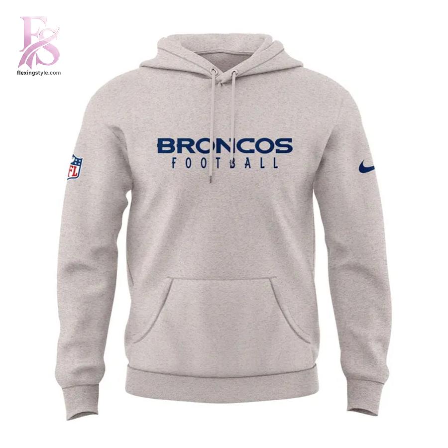 Visually striking, the light gray base pops with the iconic blue-and-orange flaming horse emblem on the back, symbolizing the team’s fierce energy and heritage. The front boldly proclaims “BRONCOS FOOTBALL” in sleek navy lettering, flanked by authentic Nike and NFL patches for that official touch. Subtle details like the smooth texture and clean lines give it a modern edge, evoking Payton’s strategic prowess and the excitement of the 2026 season.
