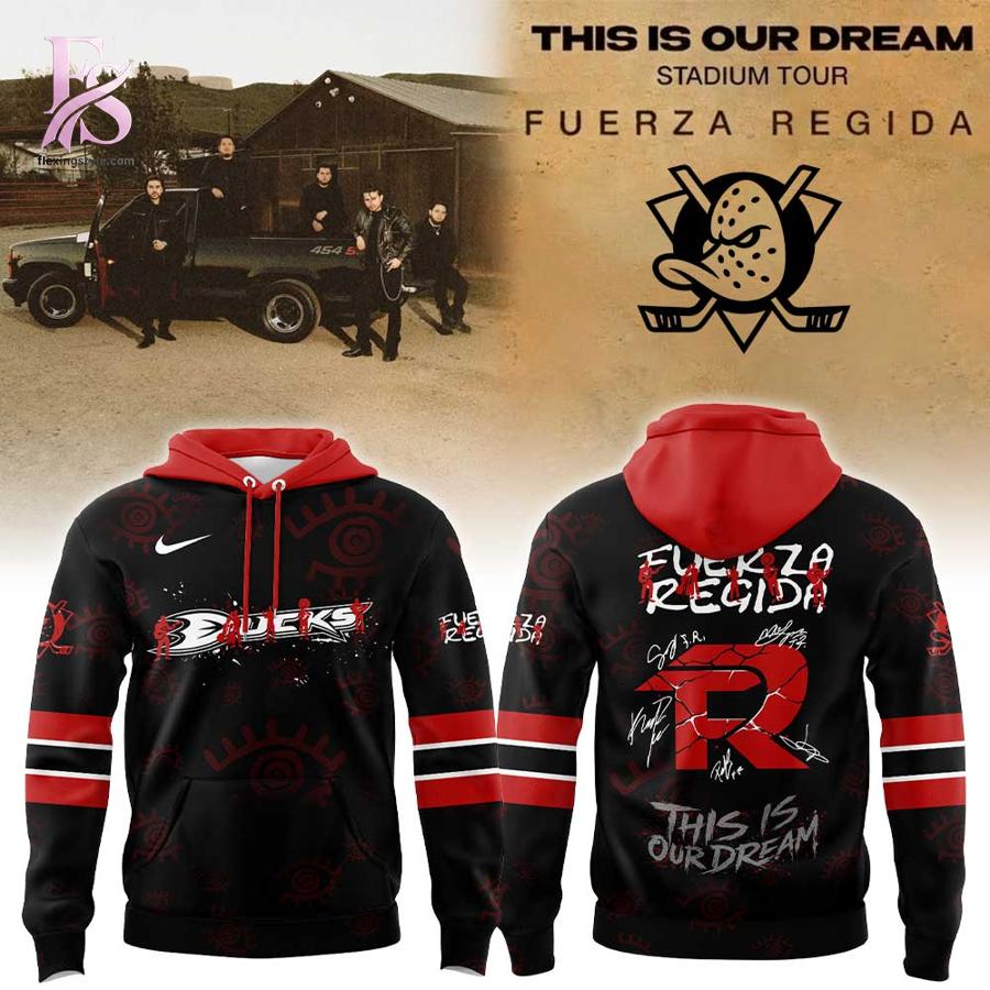 Anaheim Ducks Fuerza Regida This Is Our Dream Stadium Tour 2026 Hoodie – a statement piece that blends music culture and hockey energy into one standout design. Whether you’re a die-hard Ducks fan or vibing with Fuerza Regida’s tour aesthetic, this hoodie instantly grabs attention and keeps you looking effortlessly cool.