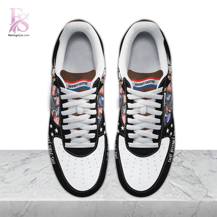 More than just footwear, the Beyonce Cowboy Carter Air Force Shoes are a celebration of fandom and confidence. They allow you to showcase your Beyoncé fan spirit while embracing a bold Western-pop crossover style that stands out from standard sneakers. Perfect for fans searching for Beyonce shoes, custom Air Force 1s, or Cowboy Carter streetwear, this pair delivers both visual impact and everyday wearability.