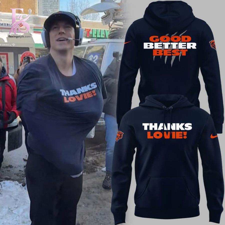 Celebrate a defining moment in Chicago Bears history with the Chicago Bears THANKS LOVIE Hoodie, a bold tribute that blends NFL tradition, emotional storytelling, and everyday streetwear comfort. Designed for true Bears fans, this hoodie captures the pride, gratitude, and competitive spirit that define Chicago football, making it a must-have piece for any loyal supporter.