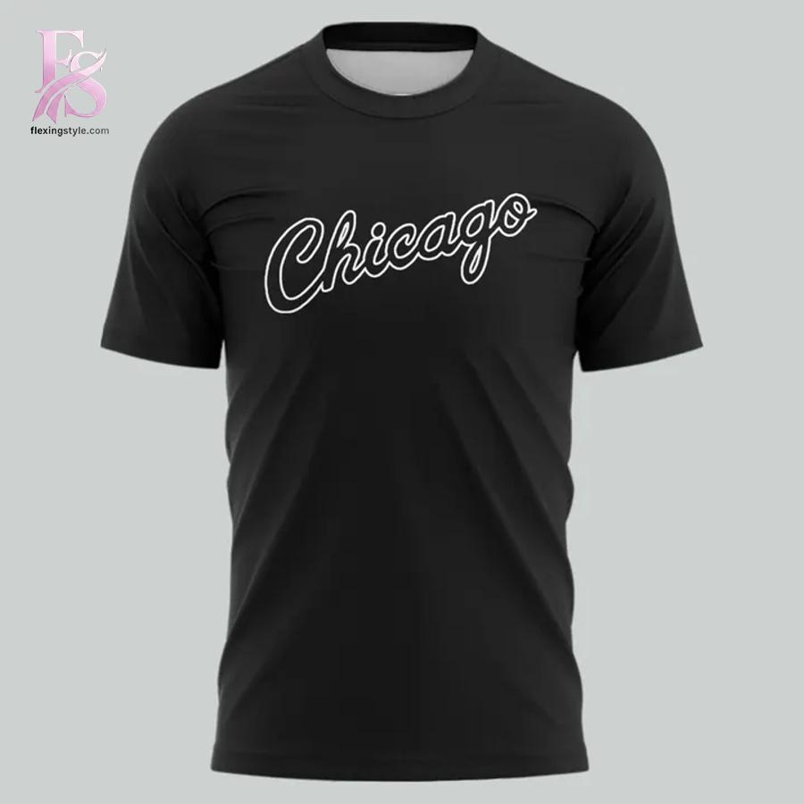 The front option displays “Chicago” in elegant cursive script with a clean white outline, offering a more subtle yet equally stylish way to rep your team. Both designs are printed on a deep black cotton tee that makes the red and white graphics absolutely pop, creating striking visual contrast that demands attention.