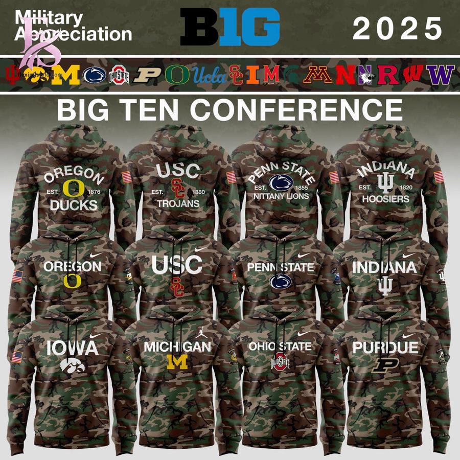About the Custom NCAA Big Ten Conference Teams 2026 Military Appreciation Hoodie