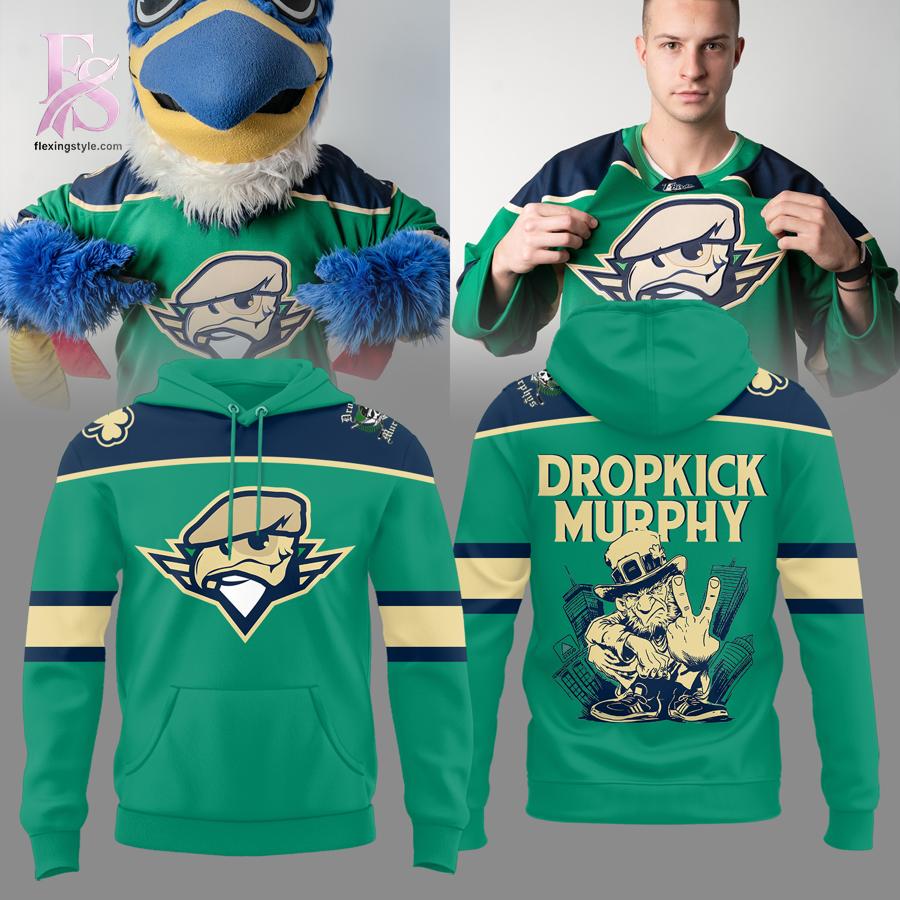 Two New England legends collide. The Dropkick Murphys x Springfield Thunderbirds Hoodie represents an electrifying collaboration that perfectly captures the gritty spirit of Boston’s most iconic Celtic punk band and the AHL’s fierce Springfield franchise. As the Thunderbirds continue their impressive 2025-26 season push and Dropkick Murphys celebrate decades of anthemic Boston pride, this exclusive hockey-style hoodie stands as the ultimate crossover piece for fans who live for both hard-hitting music and harder-hitting hockey.