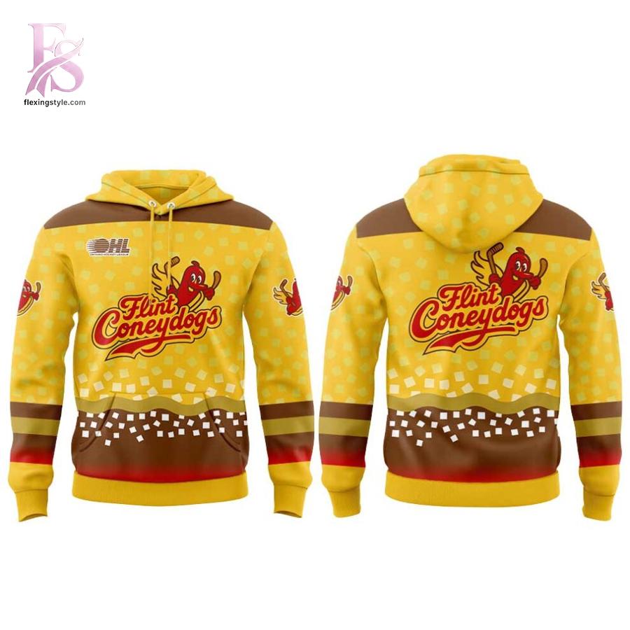 Celebrate Flint’s most delicious tradition with the Flint Firebirds Coneydogs Uniform 2026 Hoodie. This eye-catching piece of fan gear captures the high-energy spirit of the OHL’s most flavorful alternate identity, blending the excitement of Firebirds hockey with the city’s love for a classic Coney. Whether you’re heading to the Dort Financial Center or just looking for a conversation starter, this hoodie is designed to let your Flint pride sizzle.
