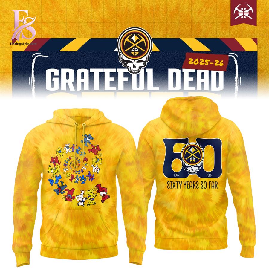 The Grateful Dead 60 Years Denver Nuggets Hoodie is a vibrant fusion of two legendary cultures. As the Denver Nuggets continue their dominant 2025-26 campaign-recently highlighted by Nikola Jokić’s 30th triple-double and Jamal Murray’s season-high 53-point performance-this limited-edition hoodie lets you celebrate Mile High basketball alongside the 60th anniversary of rock’s most enduring jam band.