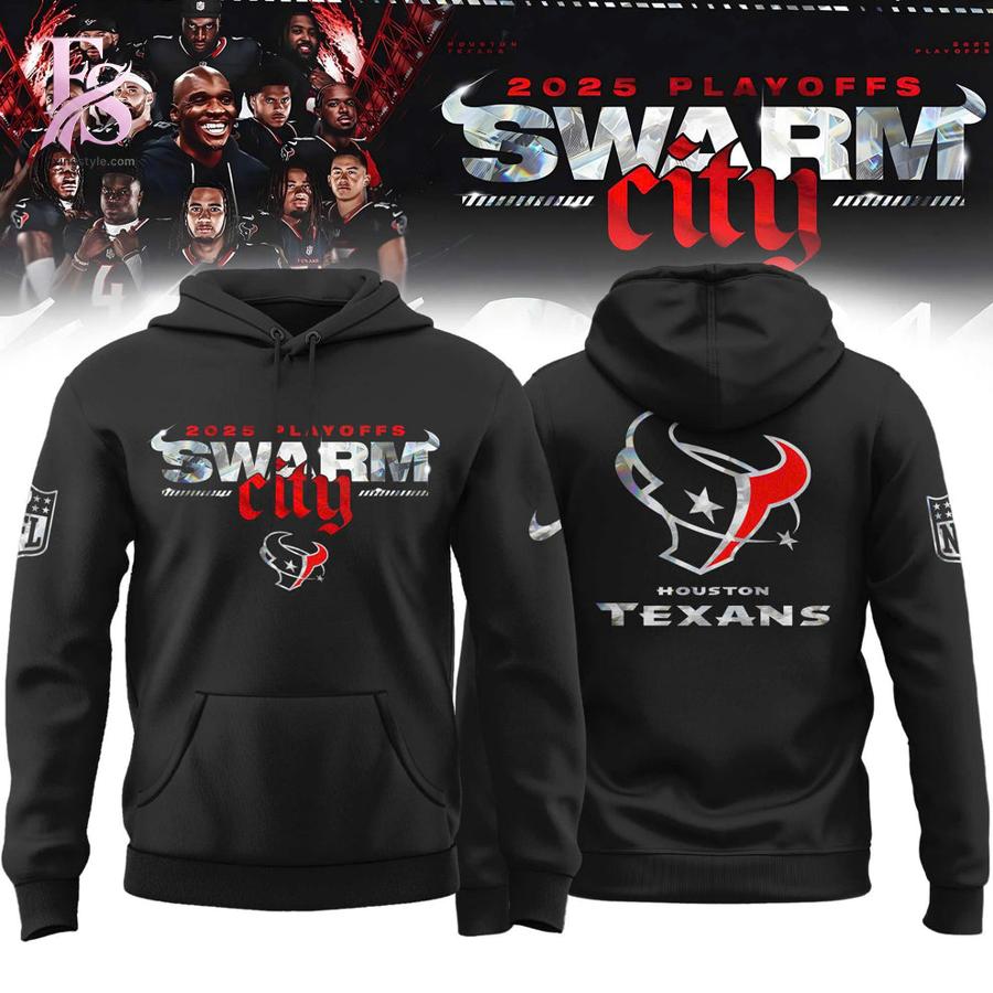 About the Houston Texans 2025 NFL Playoffs S.W.A.R.M.City Hoodie