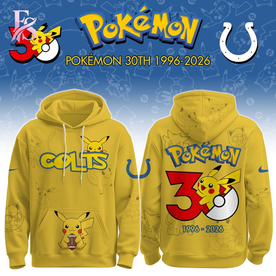 Celebrate two iconic worlds colliding with the Indianapolis Colts Pokémon 30th Anniversary Hoodie, a bold fan favorite that perfectly blends NFL pride with legendary pop culture nostalgia. Designed to honor Pokémon’s 30th anniversary (1996–2026) while showcasing unwavering Colts loyalty, this hoodie is a must-have for fans searching for Indianapolis Colts Pokémon hoodie, NFL Pokémon collaboration apparel, or unique Colts fan gear that truly stands out.