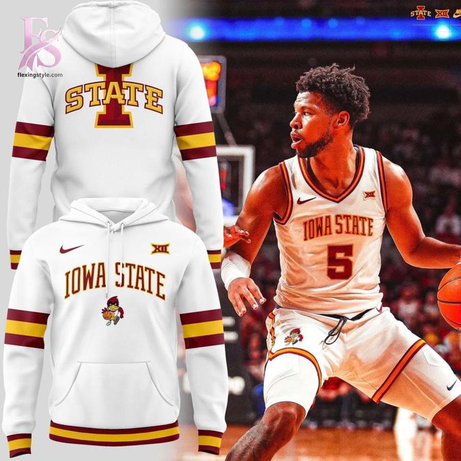 Crafted from soft, breathable high-quality cotton blend fabric, this shirt delivers all-day comfort whether you’re cheering courtside at Hilton Coliseum, tailgating with fellow fans, or hitting the streets. The crisp white base features bold “IOWA STATE” lettering across the chest in classic cardinal and gold, accented by vibrant maroon and gold sleeve stripes for that authentic throwback vibe. The iconic Cyclone mascot Cy adds playful charm on the lower front, while the number 5—honoring standout forward Joshua Jefferson’s electrifying play—brings personalized flair that true fans will love. The back showcases a large, eye-catching “STATE” with the signature “I” logo, making it perfect for showcasing your loyalty from any angle.