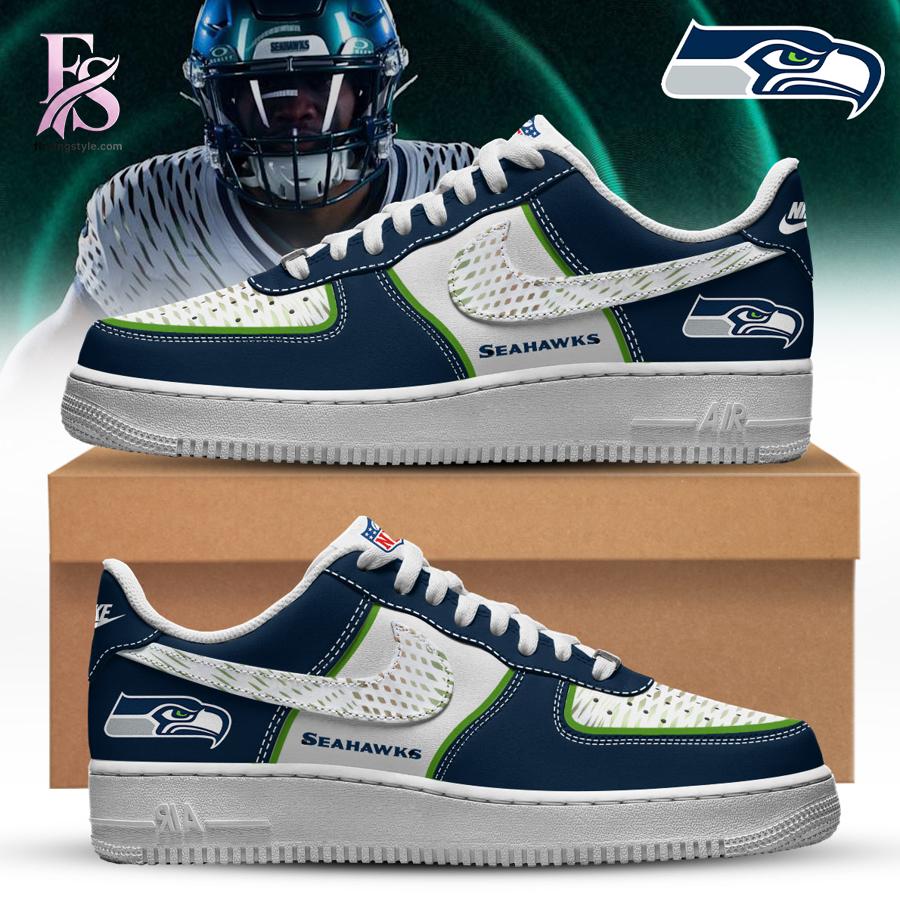 Inspired by the Seahawks’ signature colors, this Wolf Gray and navy blue Air Force 1 features bold team graphics, including the unmistakable Seahawks logo and “Seahawks” detailing along the side panel. The clean contrast of deep navy, crisp white, and subtle neon green accents creates a dynamic look that instantly turns heads. Whether you’re heading to Lumen Field on game day or styling a casual outfit, these Seattle Seahawks Nike Air Force 1 shoes make a powerful statement.