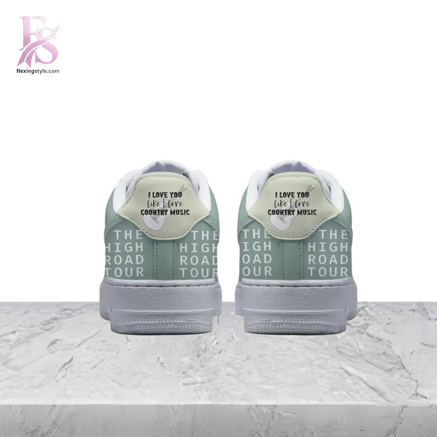 Crafted on the timeless Nike Air Force 1 Low platform, this special edition features a refined blend of soft sage green, cream, and crisp white tones, delivering a clean yet expressive aesthetic. Detailed tour-inspired graphics, signature-style typography, and visual storytelling elements are seamlessly integrated across the panels, creating a design that feels immersive and authentic. Every angle reflects the journey, energy, and emotion of The High Road Tour, making these shoes more than footwear—they are wearable memorabilia.