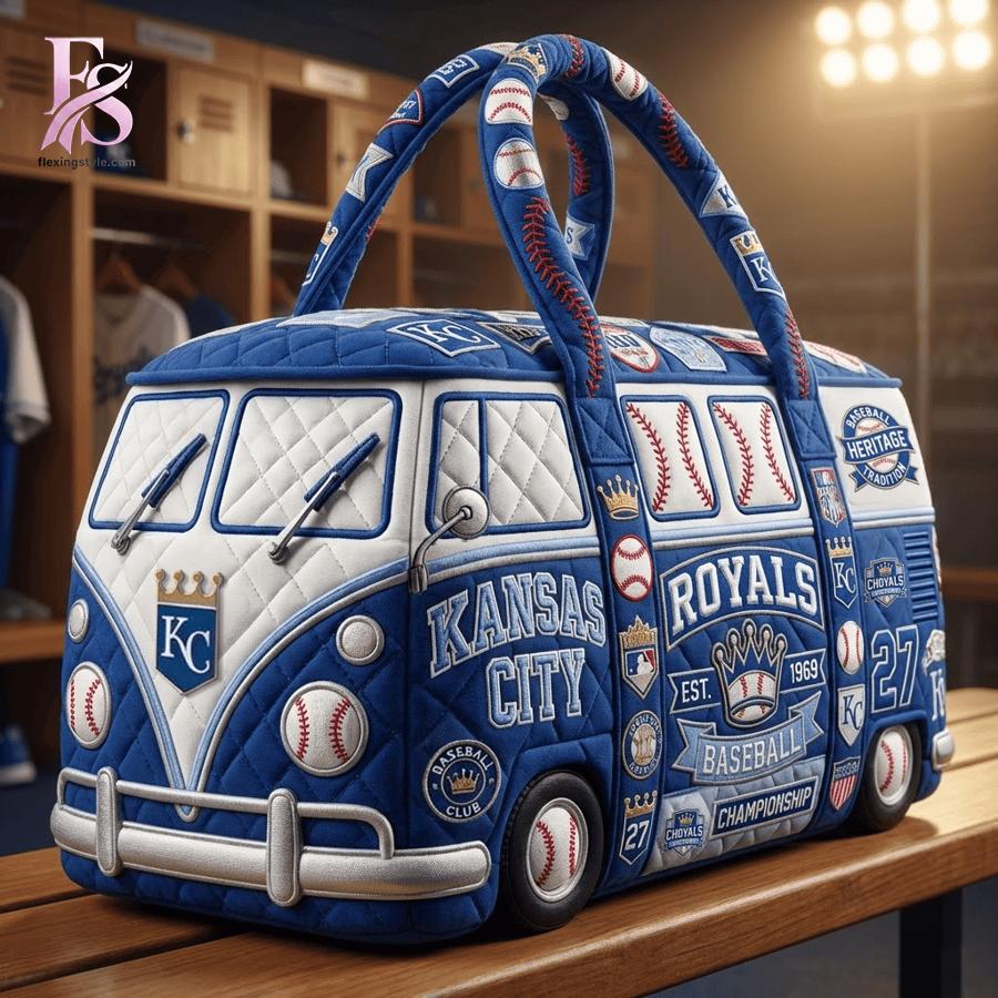 Elevate your game-day style and travel game with the Kansas City Chiefs Quilted Duffle Bag – a standout piece of NFL fan merchandise that turns heads wherever you go. Inspired by the iconic Chiefs spirit, this unique duffle bag is crafted in the shape of a classic van, fully quilted in bold royal blue and crisp white with intricate stitching that brings the team’s heritage to life. From the front featuring the proud “KANSAS CITY CHIEFS” lettering, crown emblem, and arrowhead logo to the sides adorned with baseball-inspired details reimagined for football – wait, no, this is pure Chiefs pride with footballs, championship banners, “EST. 1960,” “27” nods, and heritage patches celebrating Arrowhead legacy and Super Bowl glory.