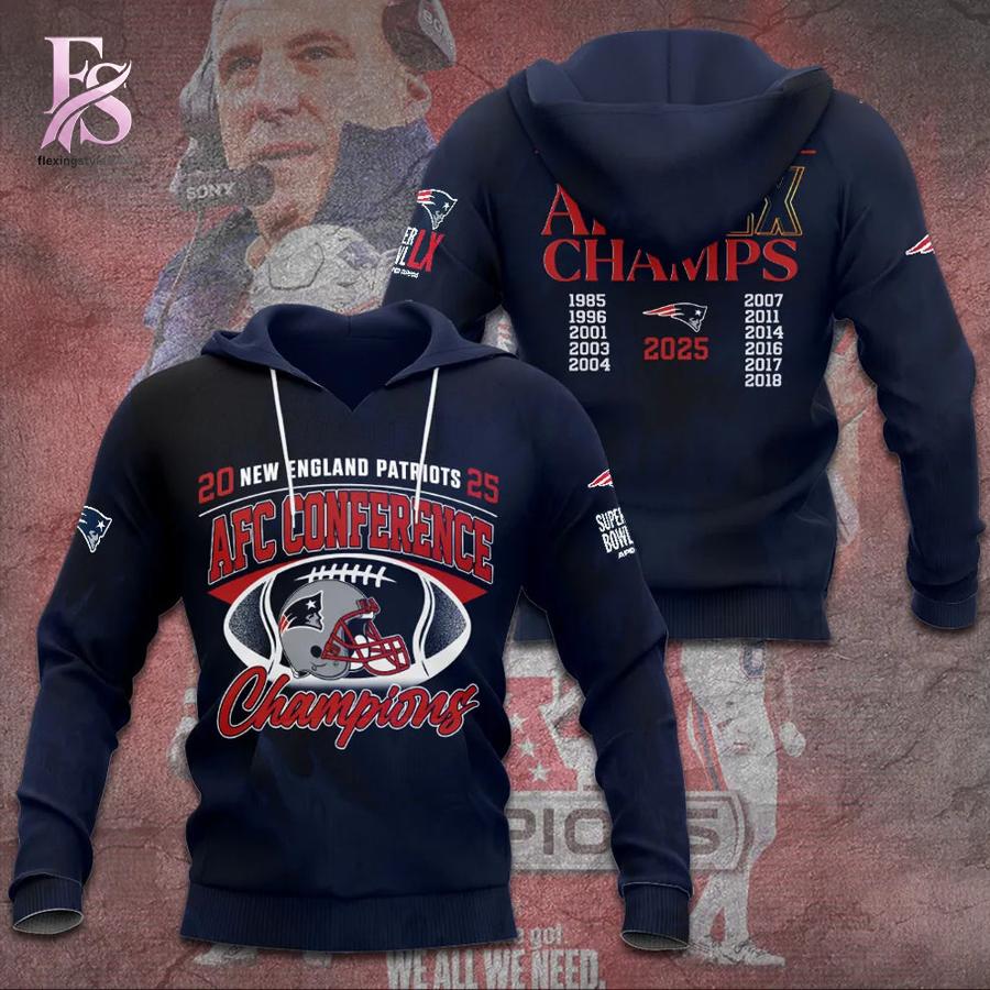 Don’t wait—secure your New England Patriots 2025 AFC Conference Champions Hoodie today and join the celebration of yet another chapter in the greatest dynasty in NFL history. Order now and show the world: We all we need is Pats pride!
