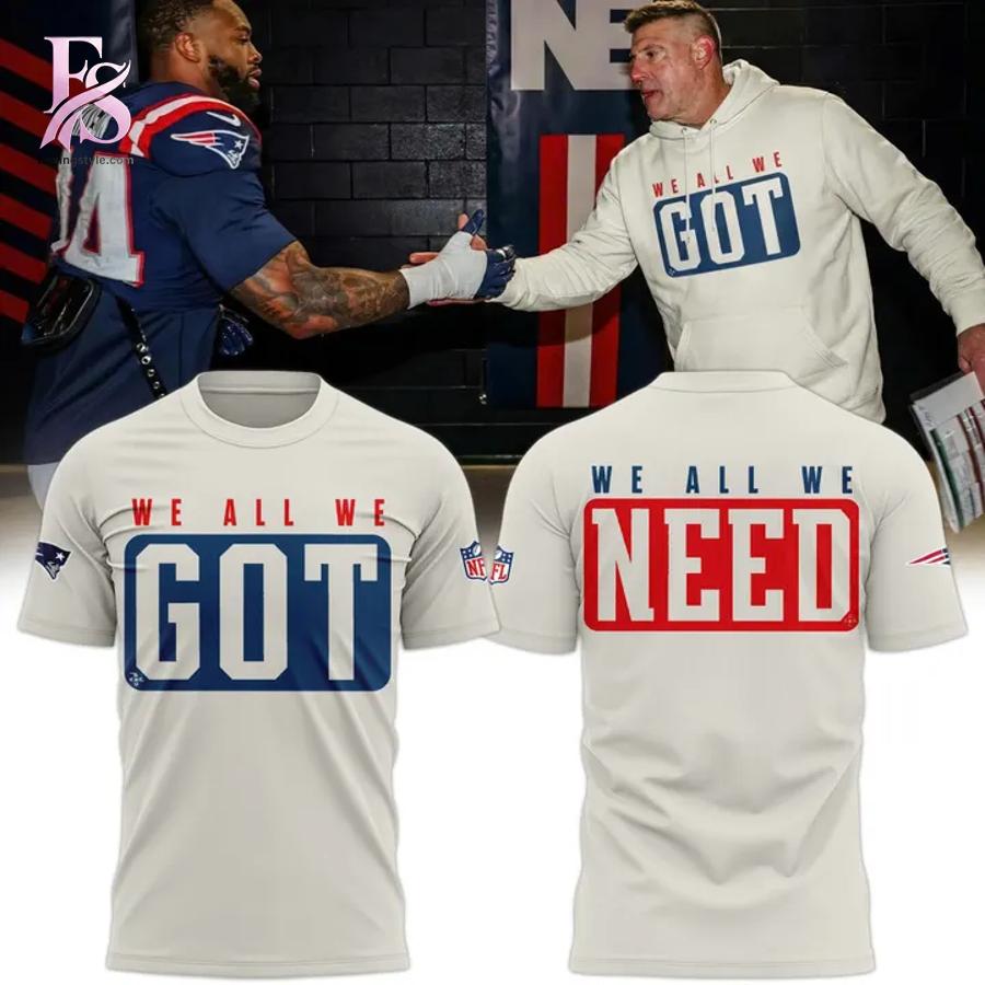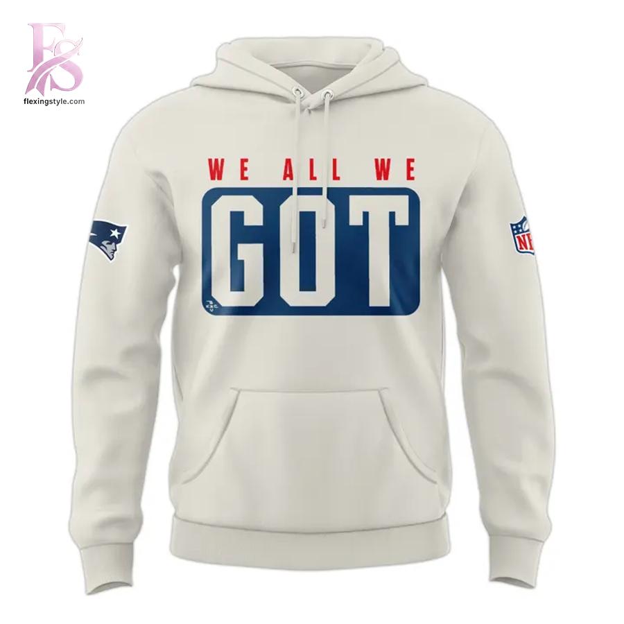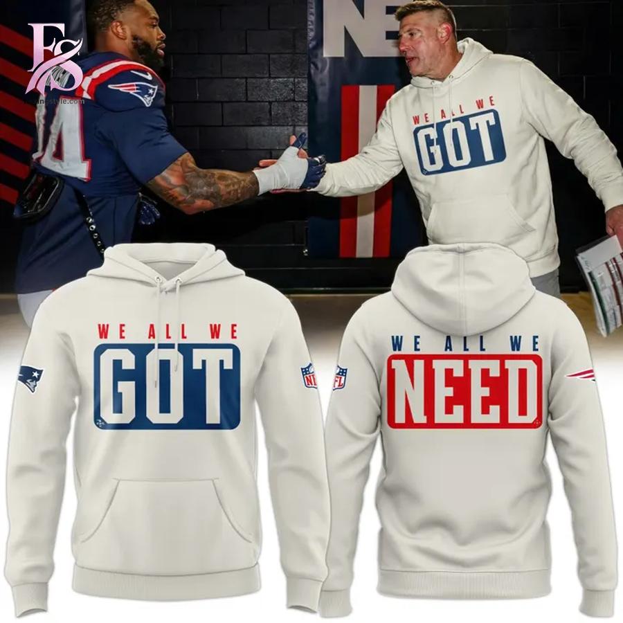 Unite with the spirit of champions in the New England Patriots We All We Got We All We Need Hoodie – a motivational powerhouse piece that’s perfect for die-hard Pats fans channeling that unbreakable team bond on game day or beyond. This Patriots-inspired hoodie embodies the iconic mantra, blending NFL pride with cozy streetwear style to keep you rallied and ready, no matter the season.