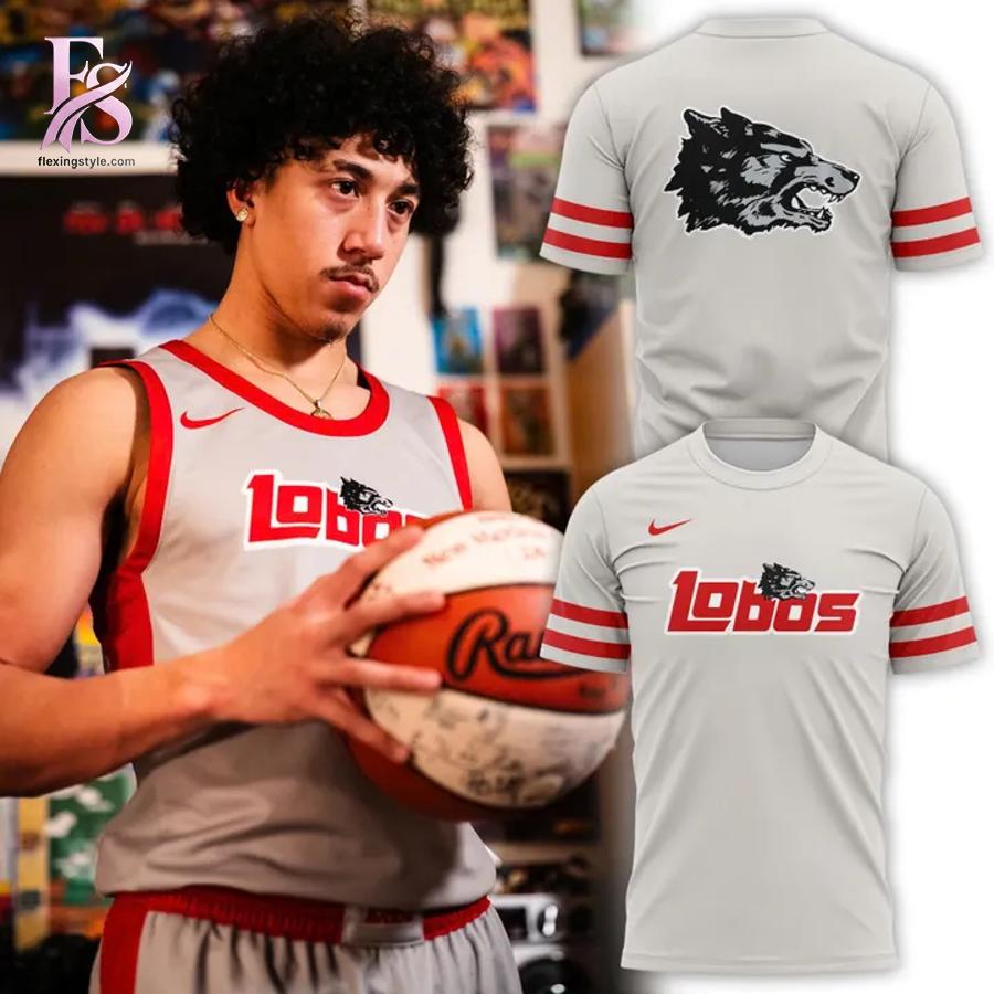 The design is a masterclass in retro revival, featuring a clean white base that allows the iconic Lobos branding to take center stage. The front prominently displays the classic “LOBOS” script in bold red, complete with the vintage wolf head peaking through the lettering. On the back, a large, aggressive retro wolf head graphic commands attention, serving as a fierce reminder of the program’s competitive grit. The sleeves and hem are accented with vibrant red racing stripes, providing a timeless collegiate look that feels both nostalgic and fresh.