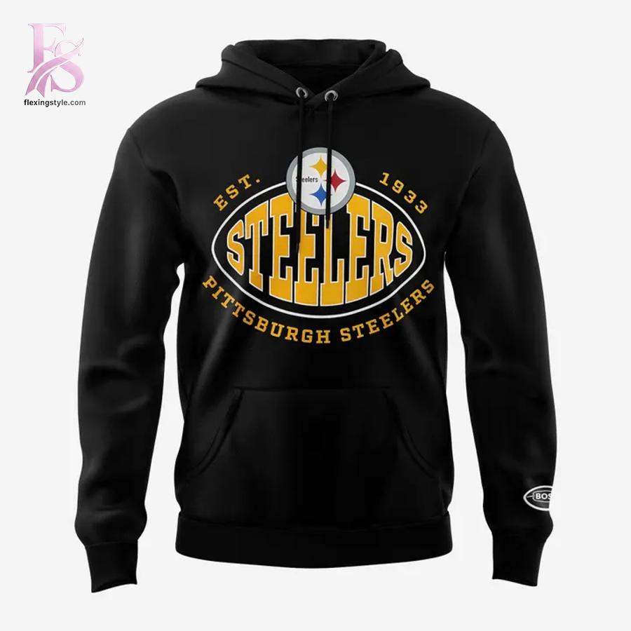 Rep your Steelers pride with this classic Pittsburgh Steelers Establishment Hoodie, featuring a bold design that pays homage to the team’s founding year of 1933. This premium black pullover combines timeless style with team heritage, making it a must-have for any true Steelers fan.